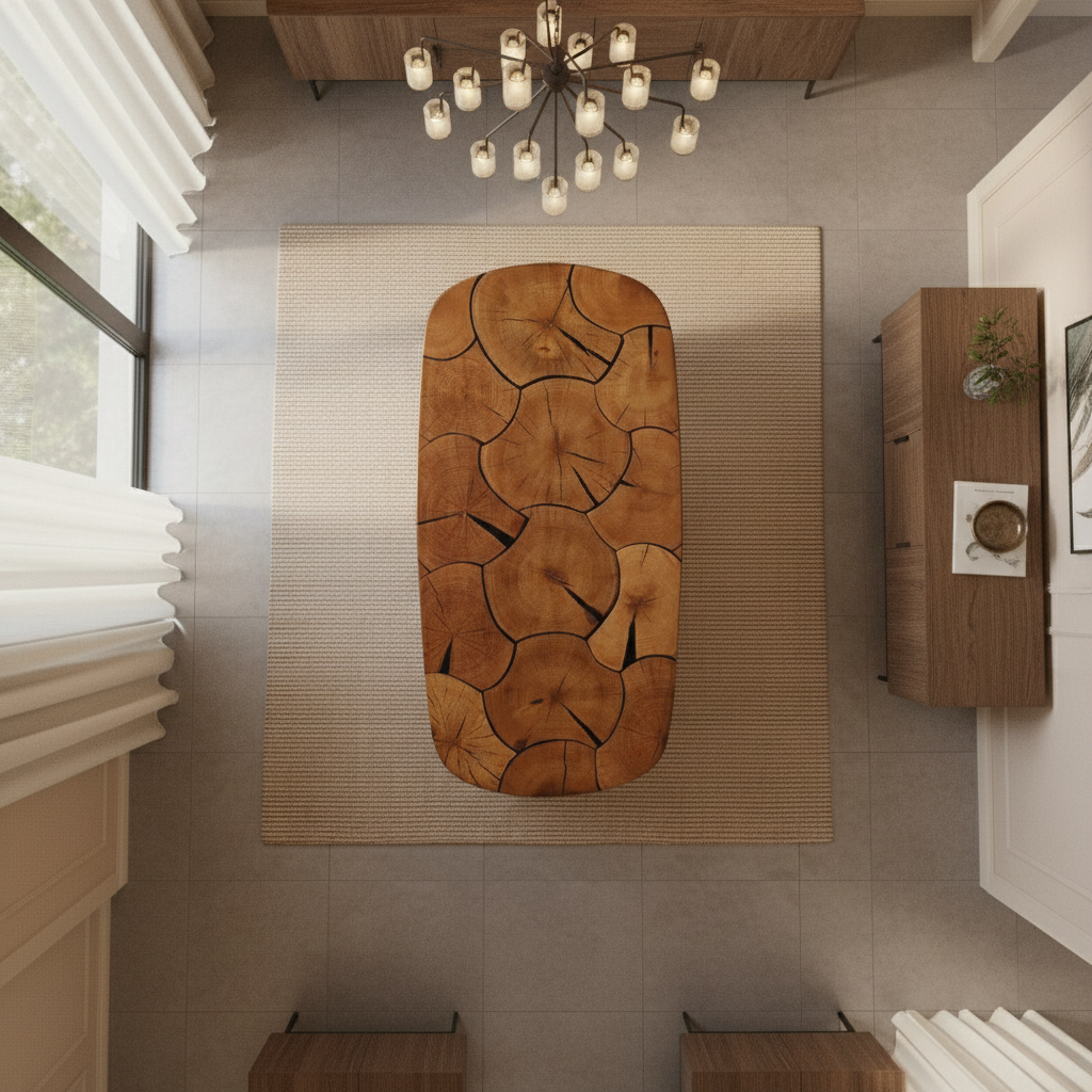 A masterpiece of solid wood artistry, this table features end-grain blocks arranged like natural sculptures, creating a statement piece that celebrates raw beauty and timeless luxury.