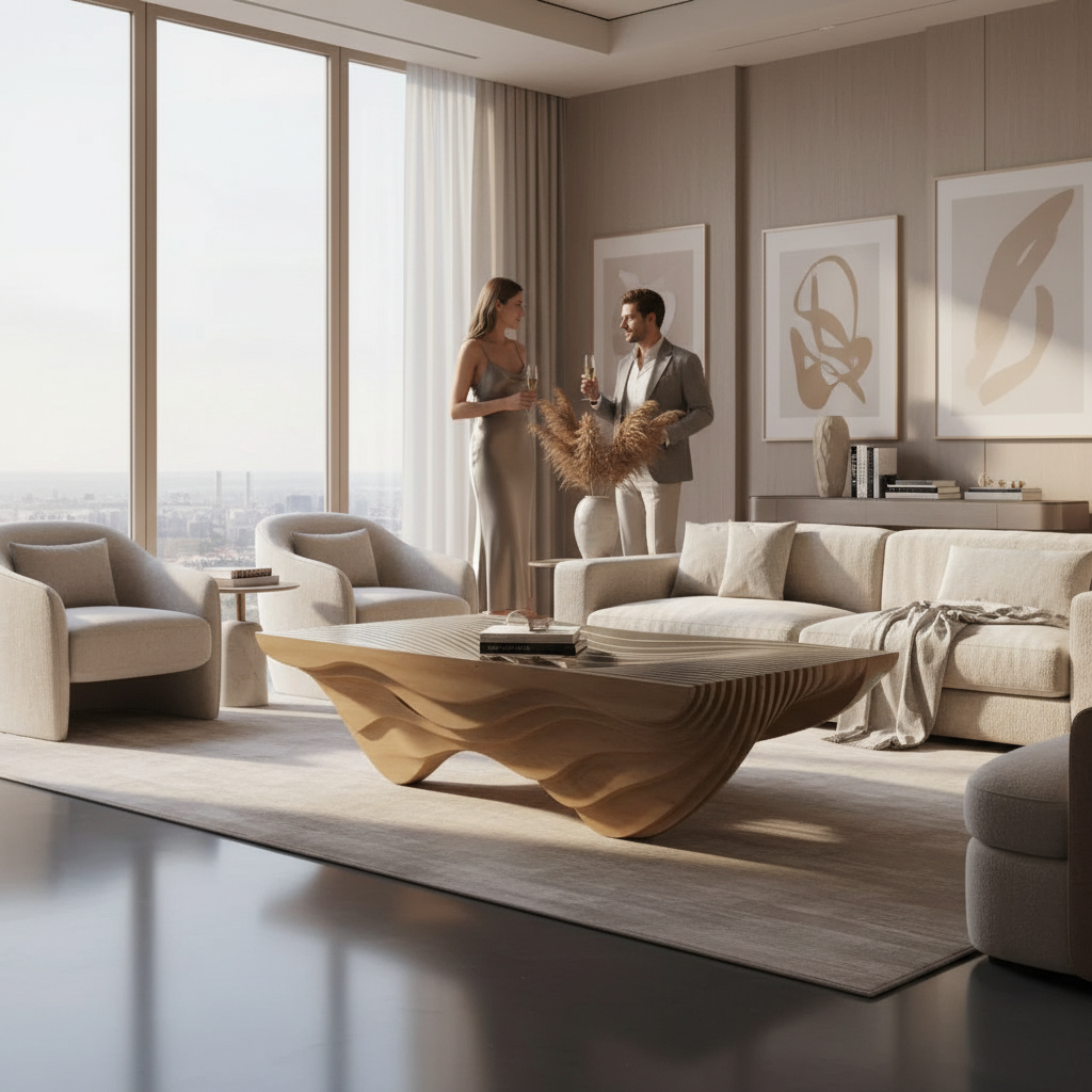 A sculptural masterpiece that blurs the line between furniture and art, the WaveForm Parametric Table brings architectural elegance and organic beauty into any modern living space. Designed through advanced parametric modelling, its flowing form draws inspiration from water, wind, and natural landscapes - creating a dynamic silhouette that captivates from every angle.