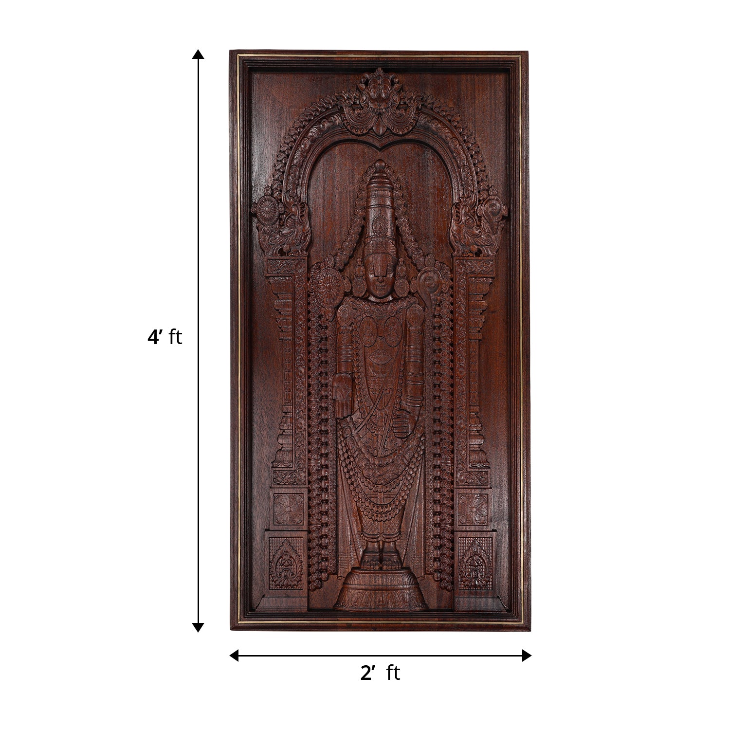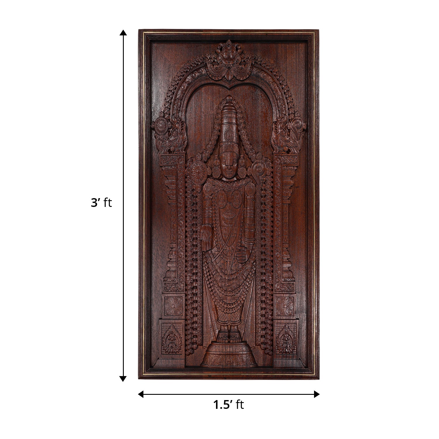 Experience divine grace with this exquisite 3D carved wall décor of Lord Tirupati Balaji, the preserver of the universe.
